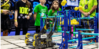 VEX IQ uses the VEX system and a fun annual game to learn about engineering and coding. Students use Python to code a robot that competes in a 1 minute game with an alliance member. Students (grades 6-8) meet 2x per week and work in small groups in their team to design the best robot and strategy to maximize their points. Tryouts are required.